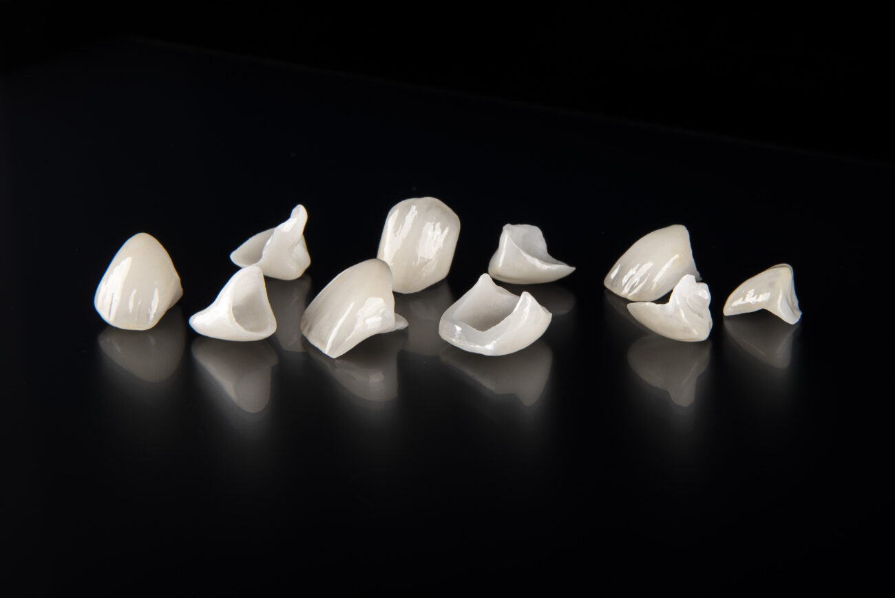 To cienkie, estetyczne płatki porcelany zakładane na zęby w stomatologii estetycznej, które korygują kształt i kolor.