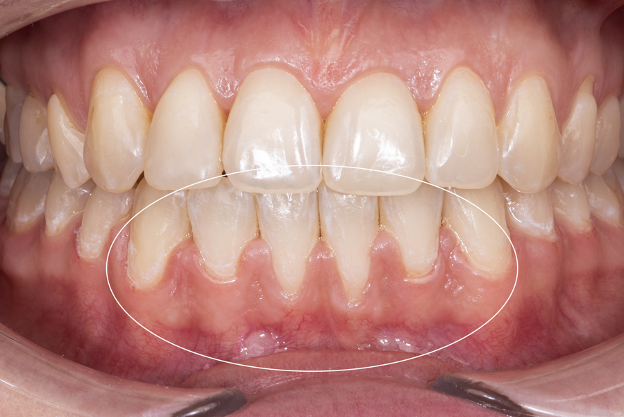 Recesja dziąsła (inaczej zanik lub cofanie się dziąseł) to proces, który odsłania korzenie zębowe, a co za tym idzie, może powodować nadwrażliwość zębów, próchnicę oraz defekt estetyczny podczas mówienia i uśmiechu. Wśród przyczyn recesji dziąsła można wymienić m.in.: wady zgryzu, genetyczną budowę dziąseł, chorobę okluzji (bruksizm) oraz nieumiejętne szczotkowanie zębów i nieprawidłową higienę.