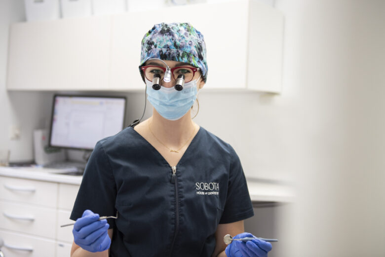 W przypadku zdiagnozowania zapalenia dziąseł, zapalenia przyzębia lub paradontozy, zajmujemy się kompleksowym leczeniem. Lekarz specjalista opracuje dla Pacjenta indywidualny plan leczenia oraz przedstawi jego etapy. W klinice SOBOTA House of Dentistry leczenie periodontologiczne rozpoczynamy od usunięcia osadów i kamienia nazębnego. Umożliwia to zminimalizowanie wystąpienia stanów zapalnych. Na tym etapie przeprowadzane są również wszystkie niezbędne zabiegi mające na celu poprawę stanu uzębienia. Drugim etapem leczenia periodontologicznego jest eliminacja stanów zapalnych oraz regeneracja tkanek przyzębia i kości. W przypadkach bardziej zaawansowanych, trudniej poddających się leczeniu z powodu występowania głębokich kieszeni, terapia w gabinecie polega na usunięciu przyczyny zapalenia przyzębia, czyli bakterii znajdujących się w złogach na powierzchniach korzeni zębów. Jest to wykonywane w znieczuleniu podczas zabiegu głębokiego usunięcia kamienia (tzw. scalling) oraz kiretażu zamkniętego (tzw. root planning). W przypadkach, które nie poddają się takiemu leczeniu konieczne jest postępowanie chirurgiczne z zastosowaniem preparatów wspomagających regenerację kości, np. Emdogain i inne zabiegi odbudowujące kość.
